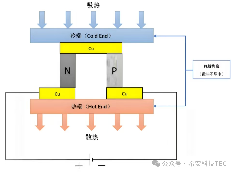 A: Når strøm passerer gennem et kredsløb bestående af to forskellige ledere eller halvledere, vil varmeabsorption eller frigivelse forekomme ved kontaktpunktet mellem de to materialer på grund af strømmens forskellige retninger. Dette er en proces med elektrotermisk omdannelse og den omvendte proces af Seebeck-effekten.