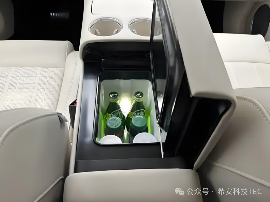 bil minikøleskab : til korte ture kan det køle drikkevarer (med en temperaturforskel på 10-15 ℃), og har en betydelig fordel i støjreduktion .